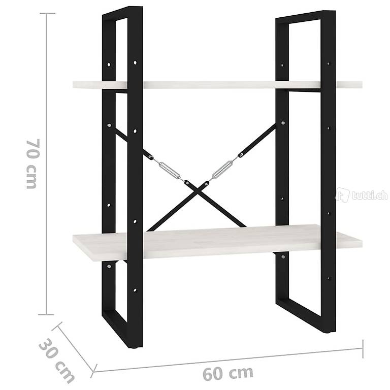 Kiefernholz gefertigt, was seine Robustheit, Haltbarkeit und Langlebigkeit gewährleistet. Es verfügt über 2 Regale, die viel