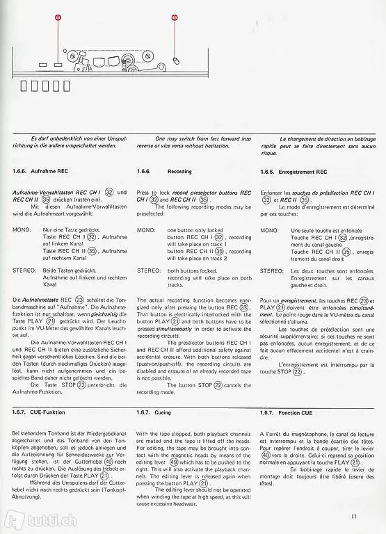 Gut erhaltene Bedienungsanleitung für A 77 Bandmaschine von Studer Revox, in den Sprachen deutsch, englisch und französisch. 56 Seiten im Format 20,8 x 28 cm, geheftet. Kontaktaufnahme am besten via trovas.ch (E-Mail) , keine SMS.