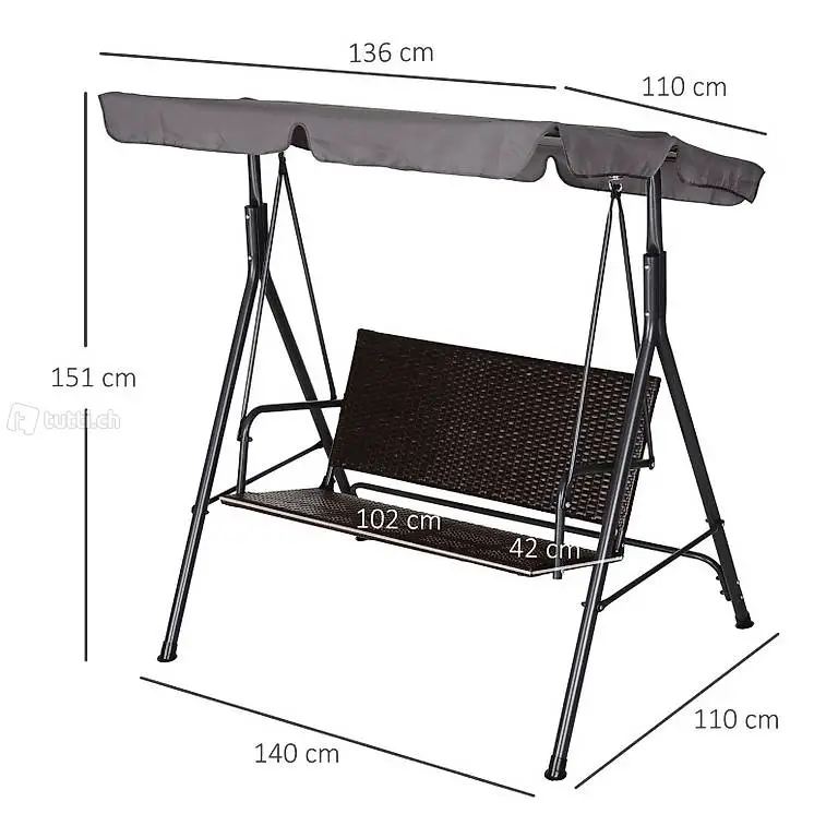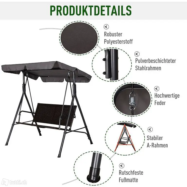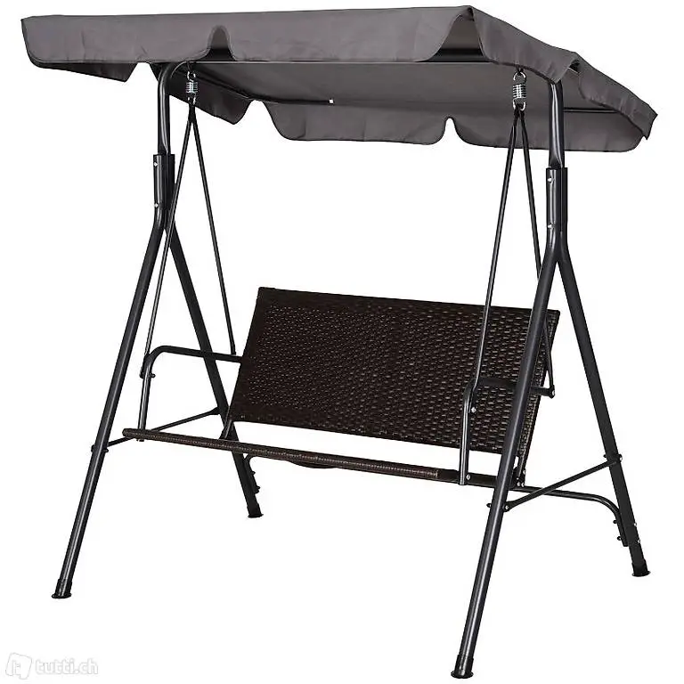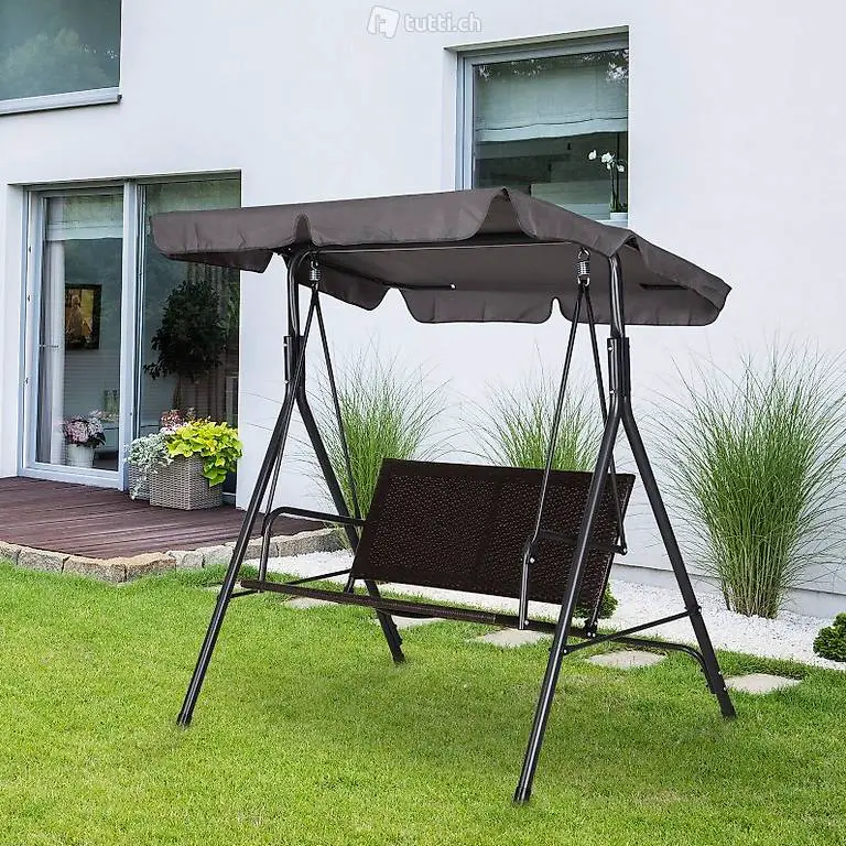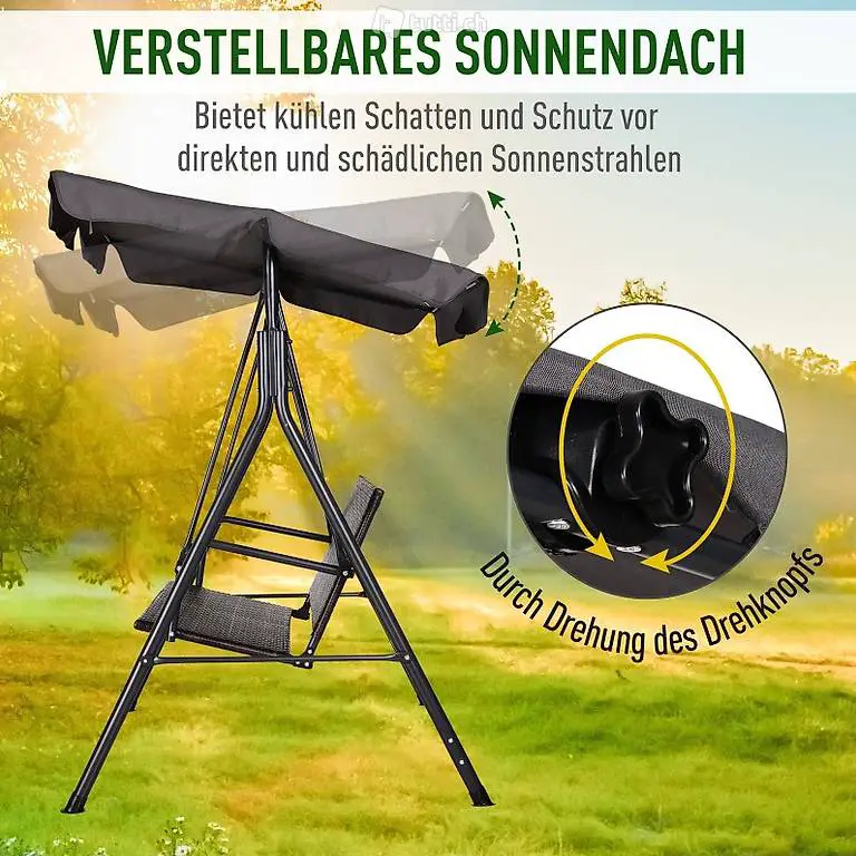 Hollywoodschaukel 2-Sitzer Gartenschaukel Schaukelbank Verstellbares Sonnendach Stahlrahmen