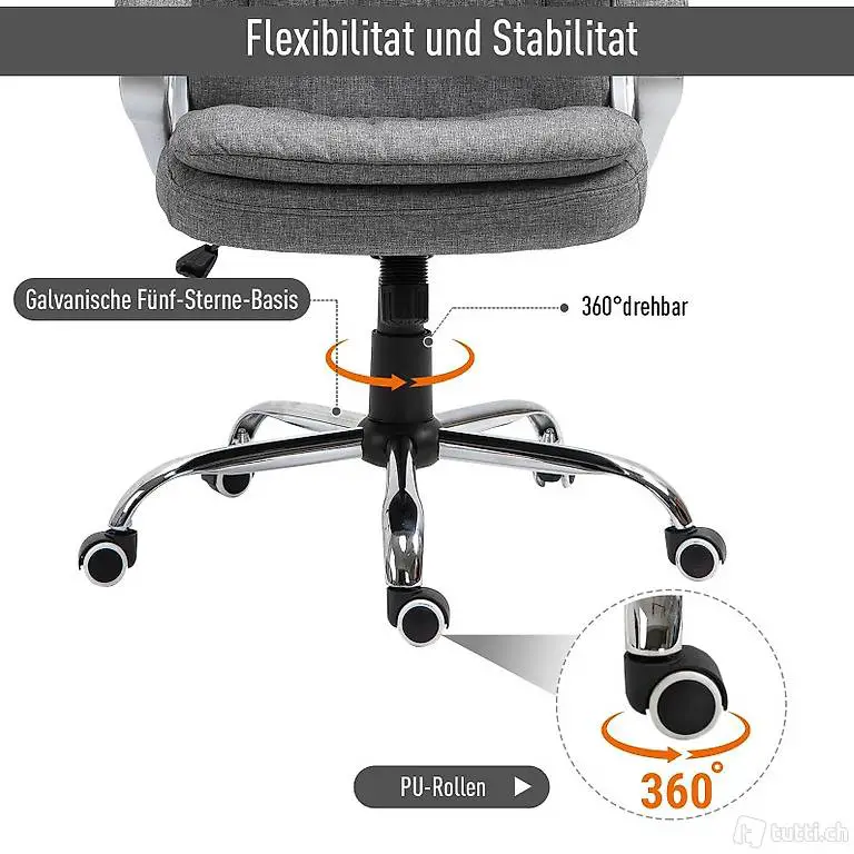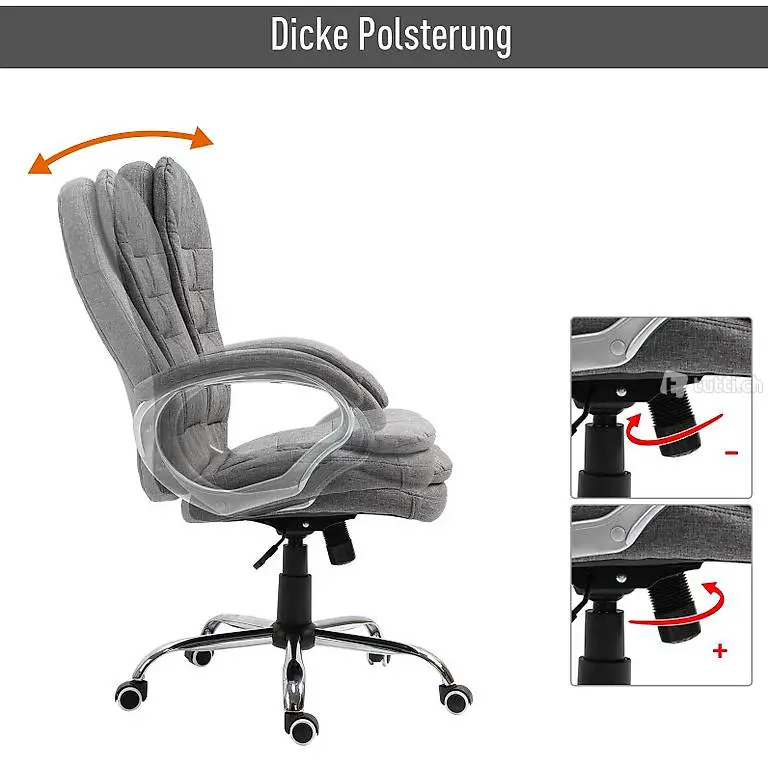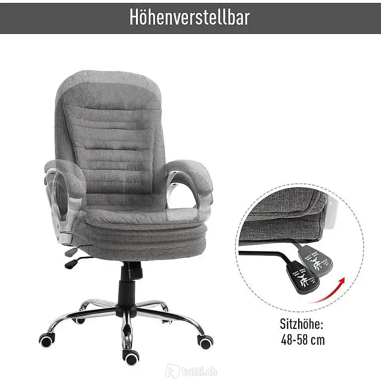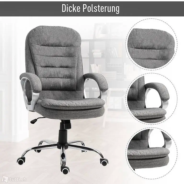 Schreibtischstuhl Drehstuhl 360° Ergonomisch Wippfunktion Höhenverstellbar Grau Leinen 64 x 75 x 111-121 cm