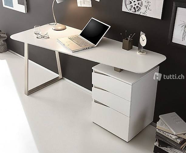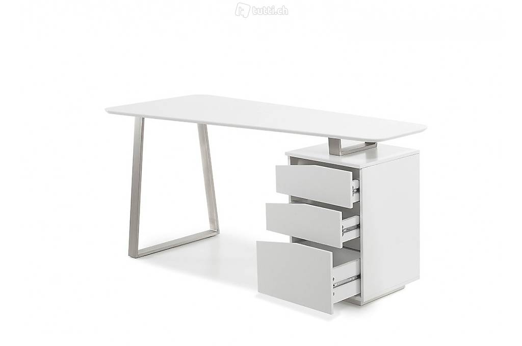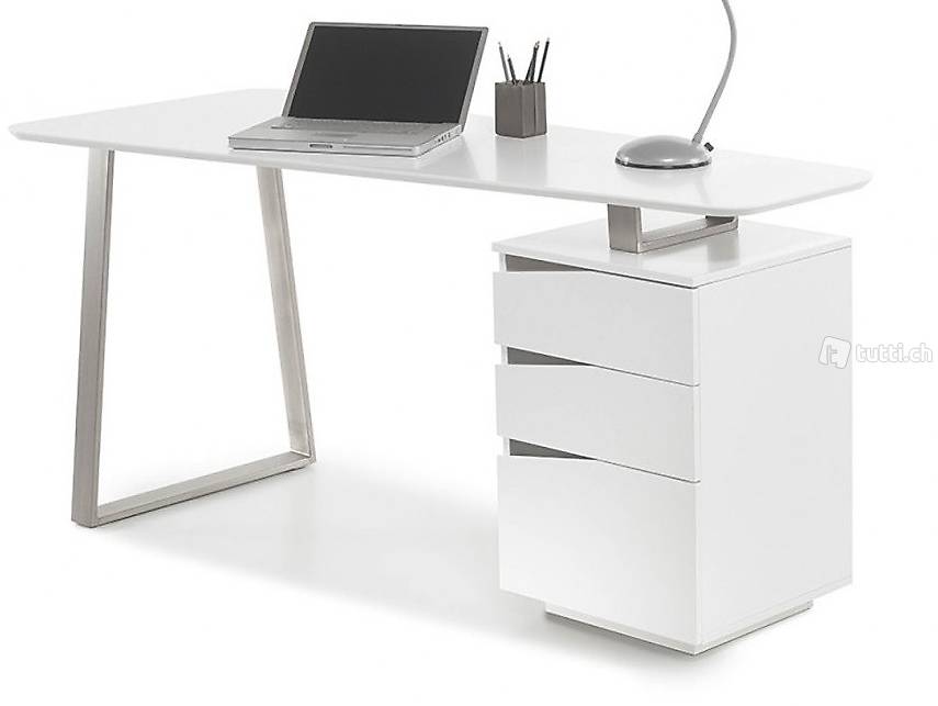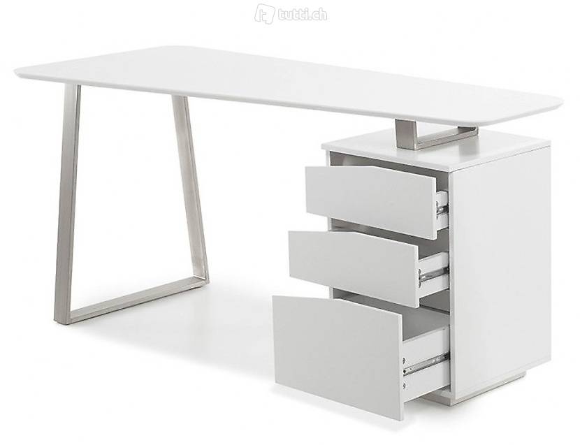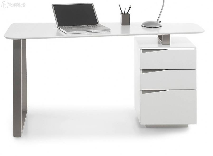 Schreibtisch Home office Bürotisch weiss matt Edelstahl
