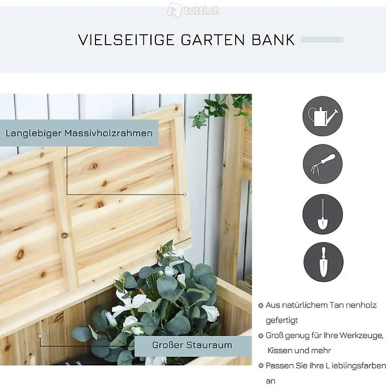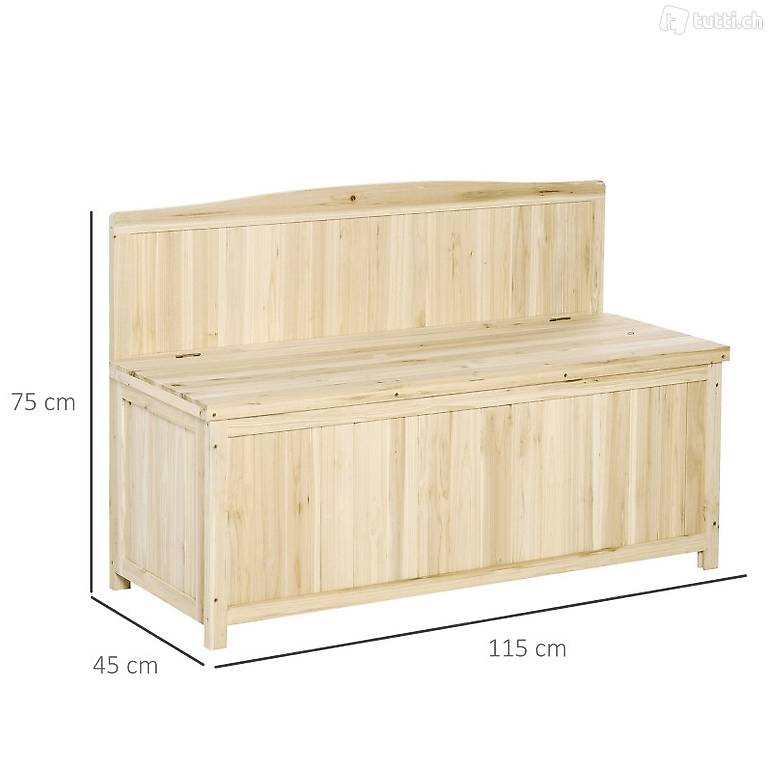 Gartenbank mit Stauraum Truhenbank Sitzbank 2-Sitzer Aufbewahrungsbox Gartentruhe Gartenbox Aufreumbox 250 kg Belastbarkeit Natur Tanneholz 115 x 45 x 75 cm