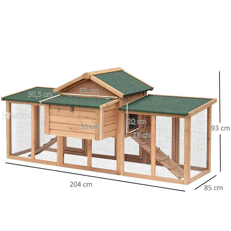 Geflügelstall Tannenholz Metalldraht Natur 204 x 85 x 93 cm
