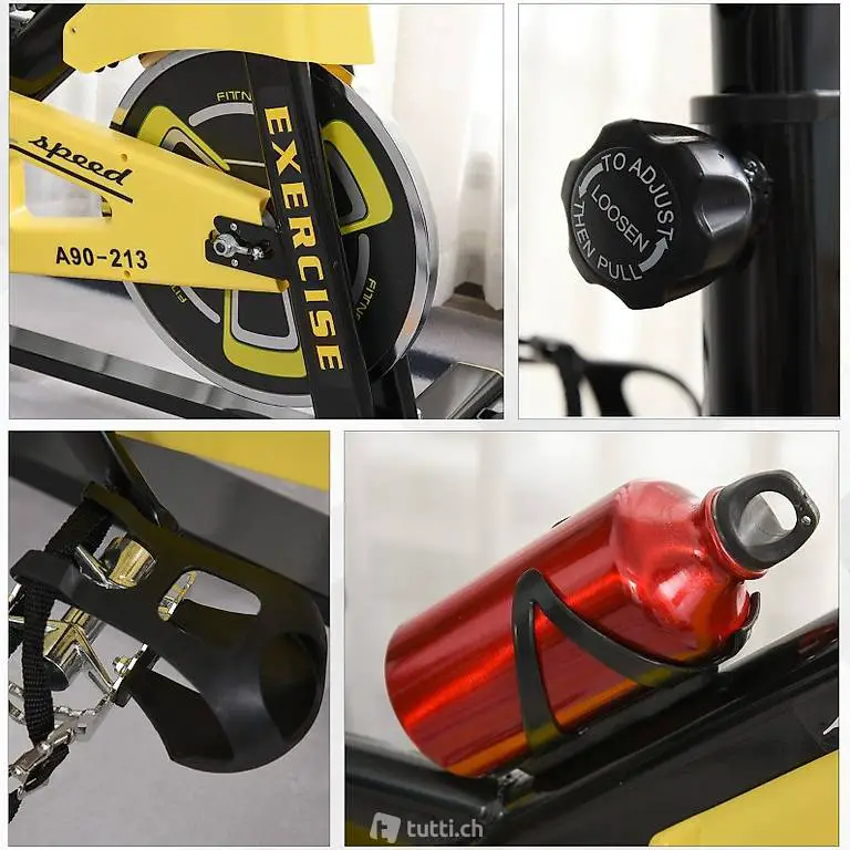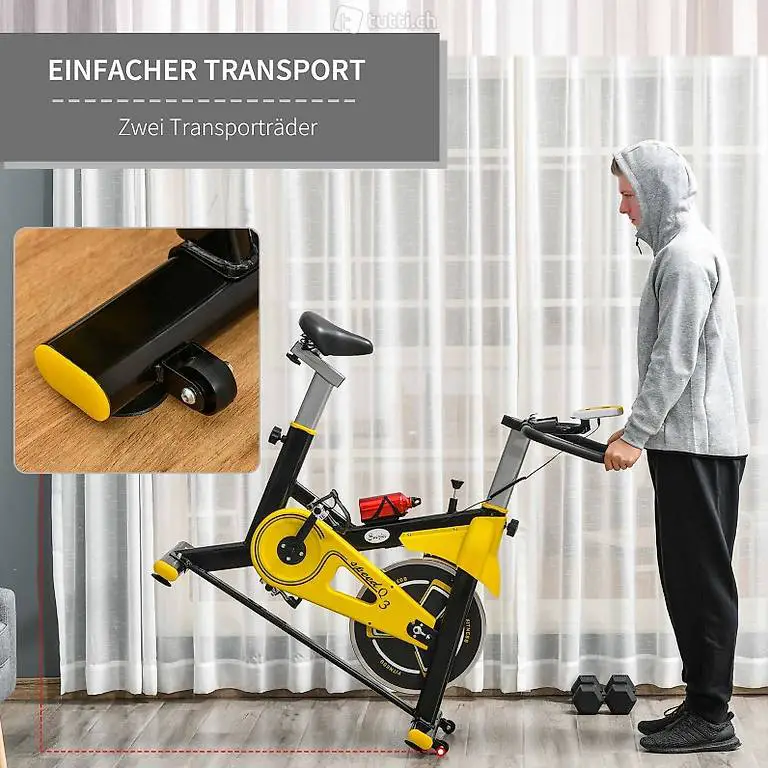 Fahrradtrainer höhenverstellbarer Heimtrainer Fitnessfahrrad Rollentrainer mit Riemenantrieb LCD-Display Stahl ABS Gelb+Schwarz 50 x 100 x 101-113 cm