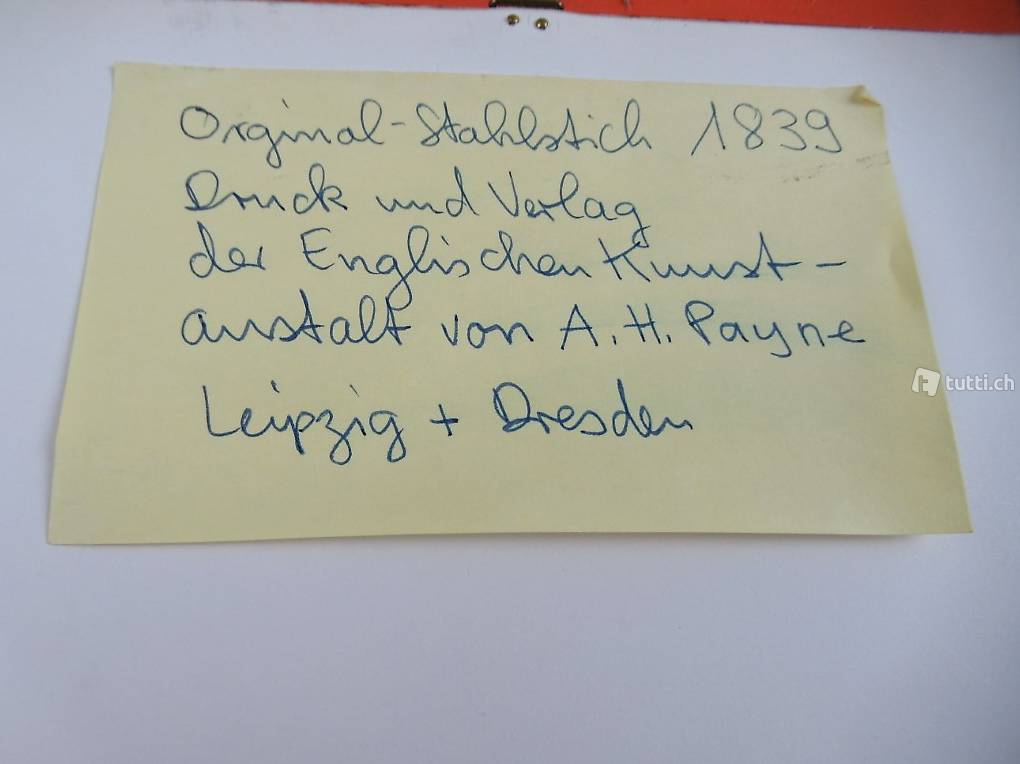 Original Stahlstich von 1839, Druck und Verlag der englischen Kunstanstalt von A-H. Payne Leipzig und Dresden in Gold Rahmen. Rahmengrösse 25 x 31 cm.