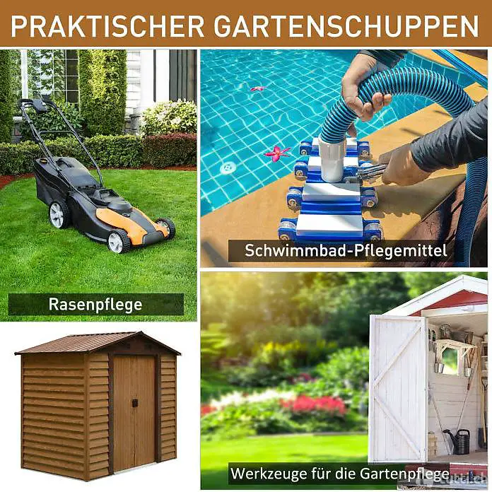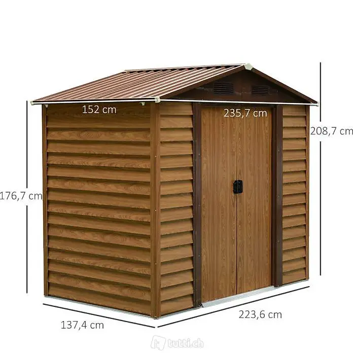 Gerätehaus Gartenhaus Holzmaserungsimitat + Kaffee L152 x B235,7 x H208,7 cm