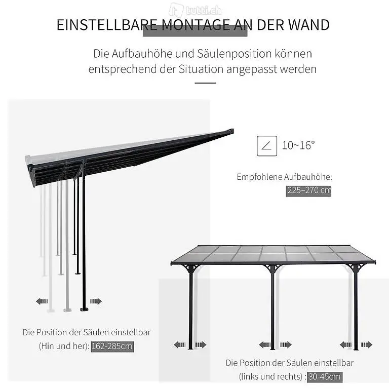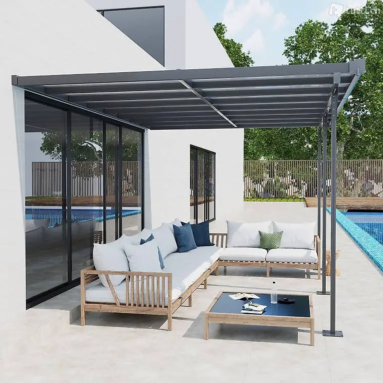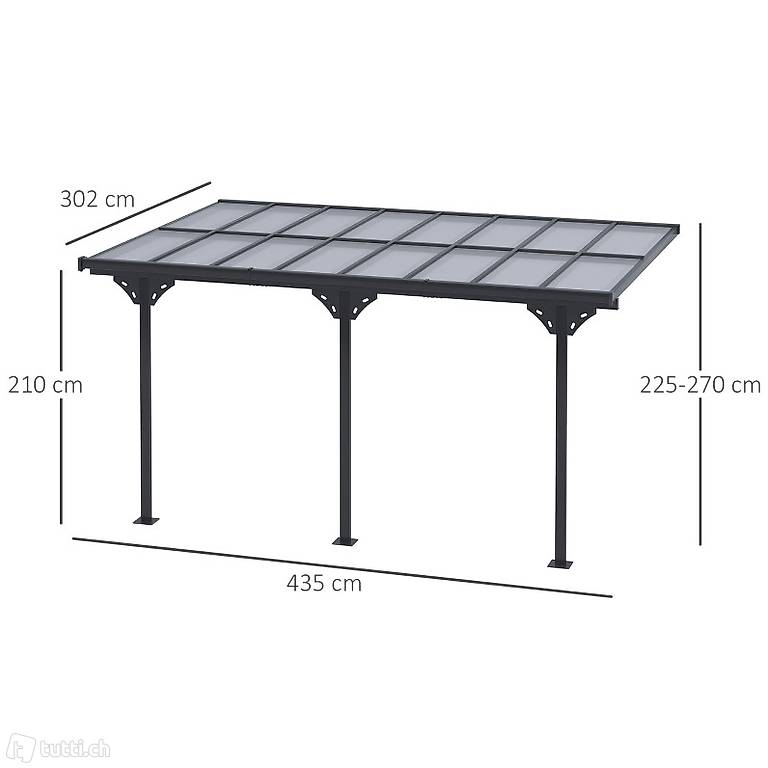 Pergola Pavillon 4 x 3 m Gartenpavillon Überdachung Zelt 231-250 cm höhenverstellbar Sonnenschutz Terrassendach Anbaupavillion Aluminium Grau