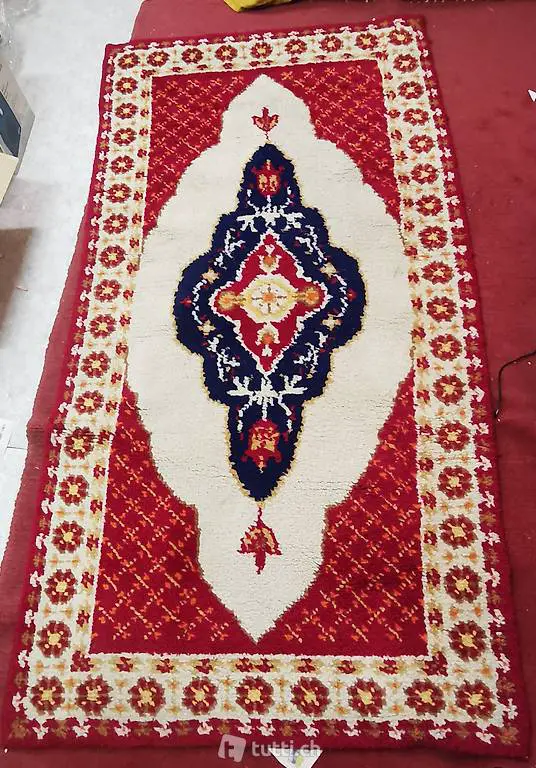 Tappeto rosso fatto a mano casalingo. In ottimo stato, usato poco.