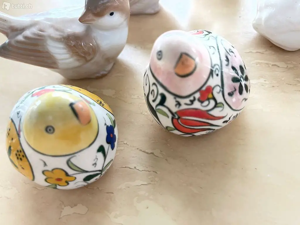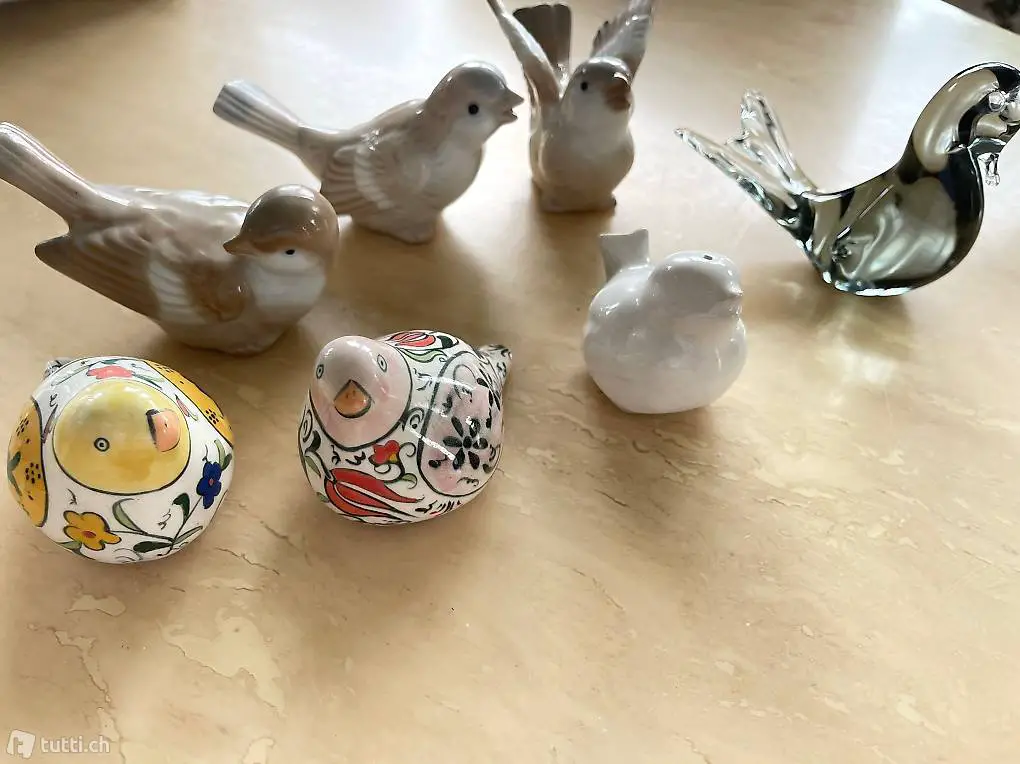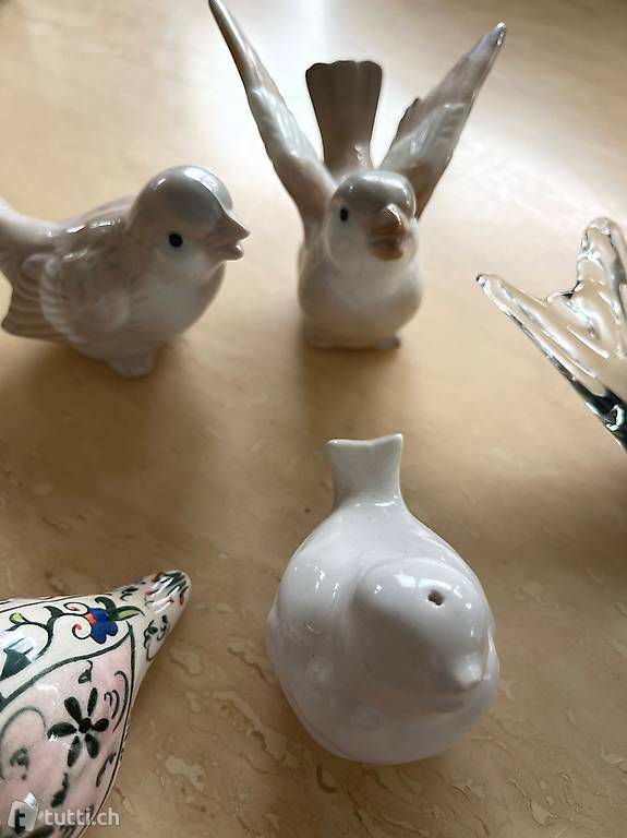 diverse vögel aus keramik & glas. 3-er set beige sehr speziell & dekorativ, 1 weisser