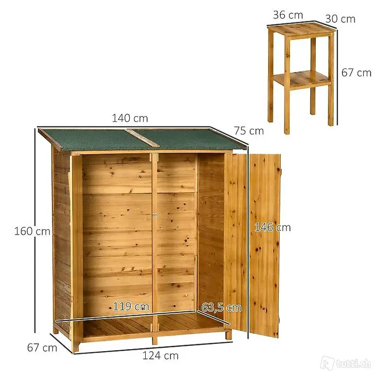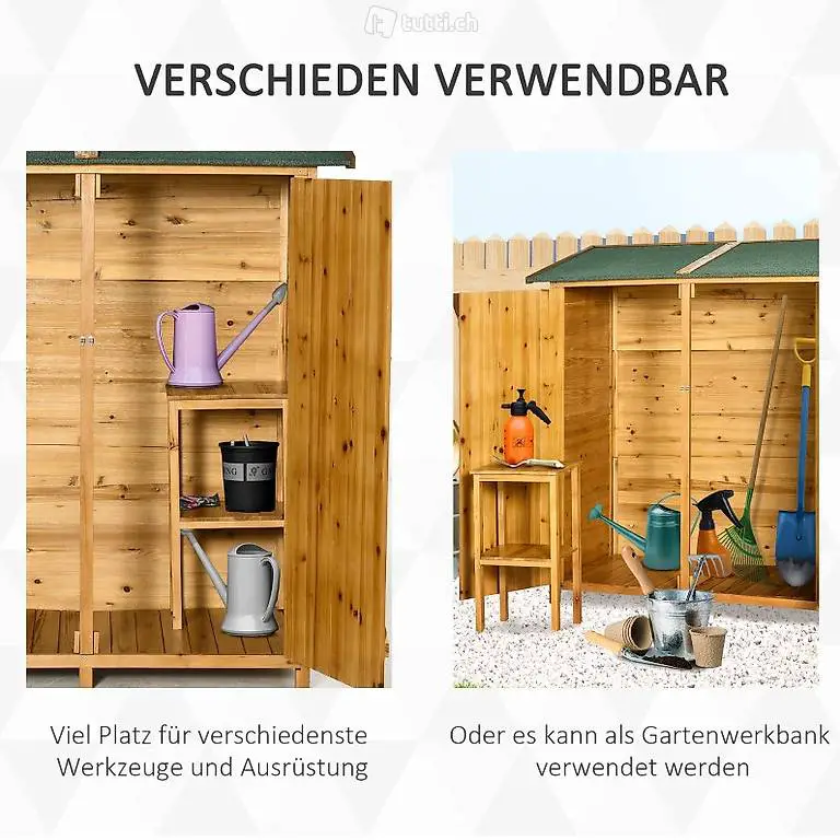 Gartenschrank Geräteschuppen mit 2 Tür Geräteschrank mit Asphaltdach Gartenlagerschrank mit Bodennägel Tannenholz Natur 140 x 75 x 160 cm