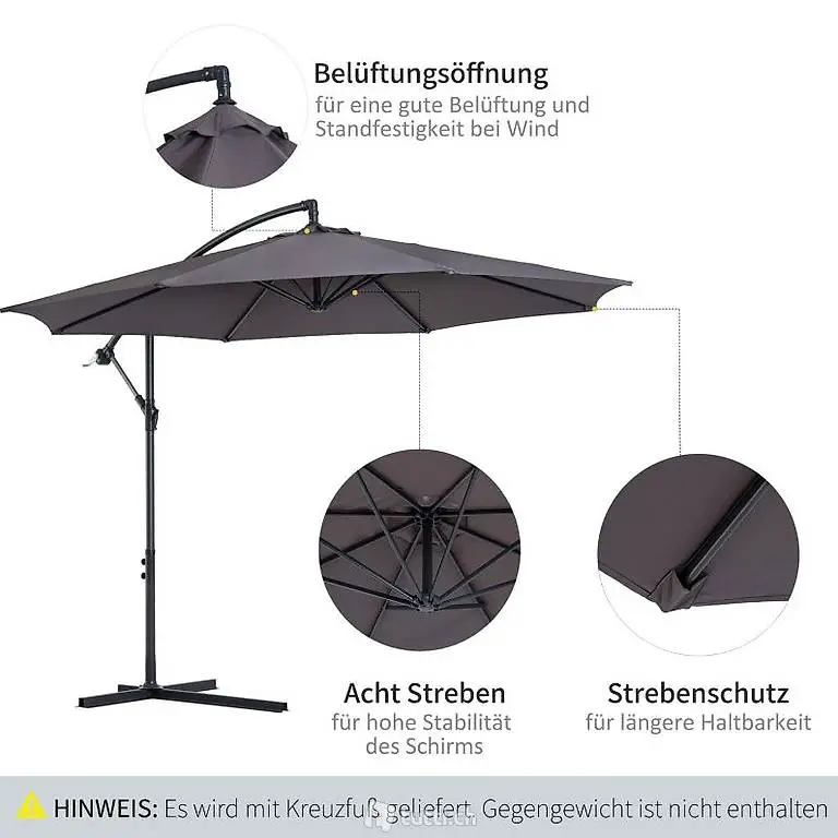 Hochwertig: Die starke Schirmstange besteht aus Stahl und ist robust und langlebig. Die 8 Streben sorgen für hohe Stabilität.