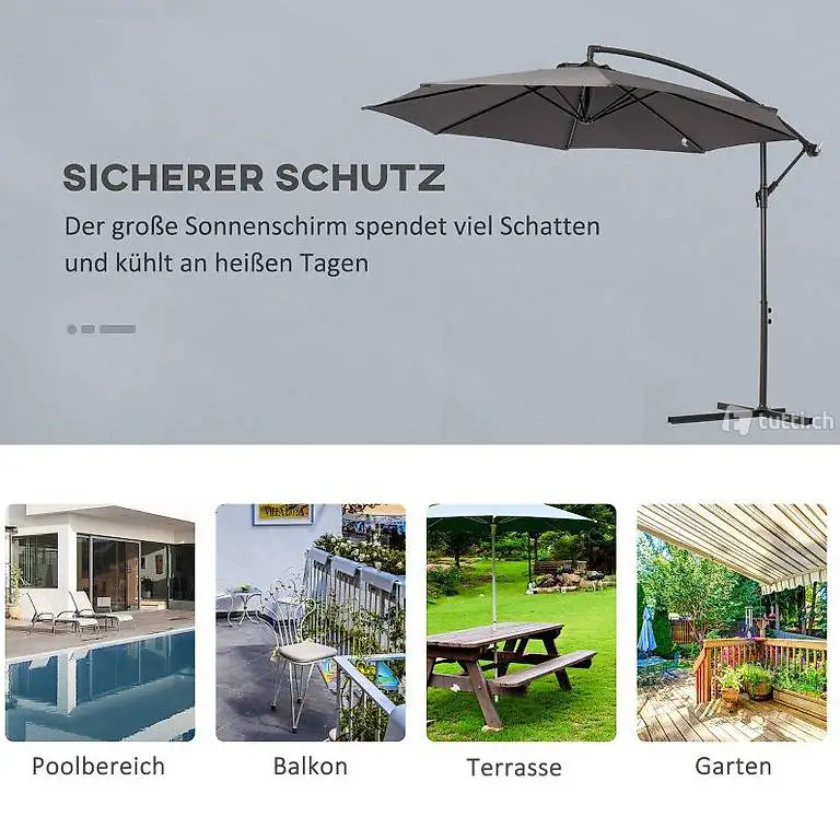 Garten, die Terrasse oder den Besuch am Strand. Dank seines grossen Schirmbezugs spendet er bequemen Schatten an sonnigen Tagen.