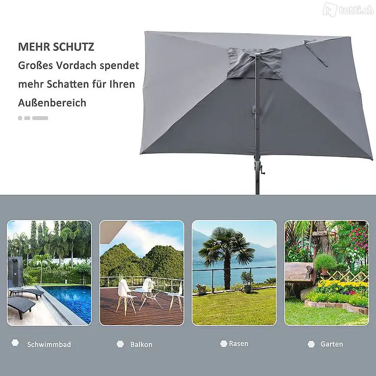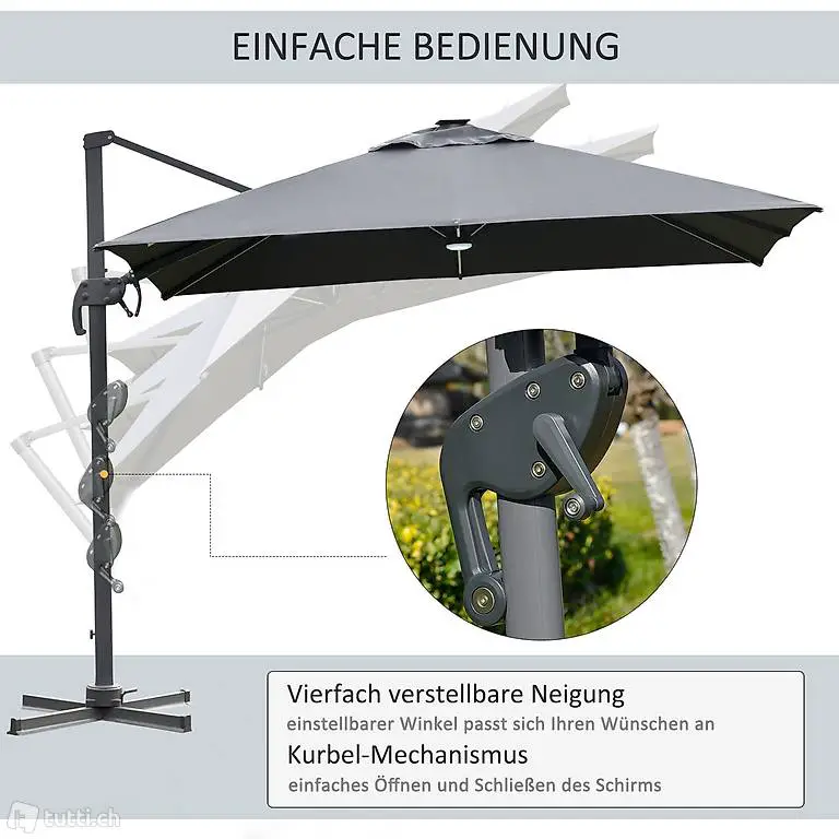 4-FACH SCHWENKBAR & HANDKURBEL: Mit dem Kurbelmechanismus können Sie den Schirm schnell und einfach öffnen und schliessen. Das in vier Positionen neigbare Schirmdach mit seinem verstellbaren Winkel und der kippbaren Schirmfläche passt sich ganz Ihren Vorlieben an und Sie können den ganzen Tag über geschützt entspannen