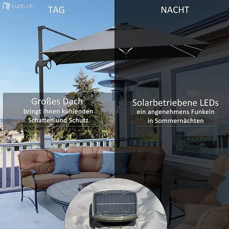 Sonnenschirm 3x3m Ampelschirm Alu Roma Schirm mit Solar-