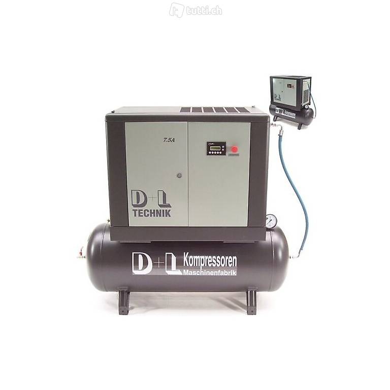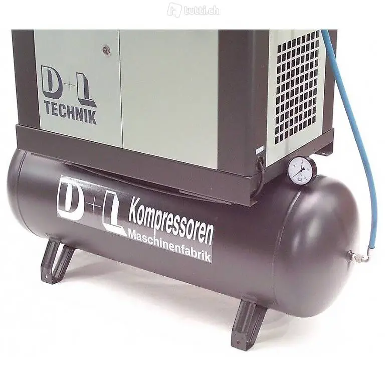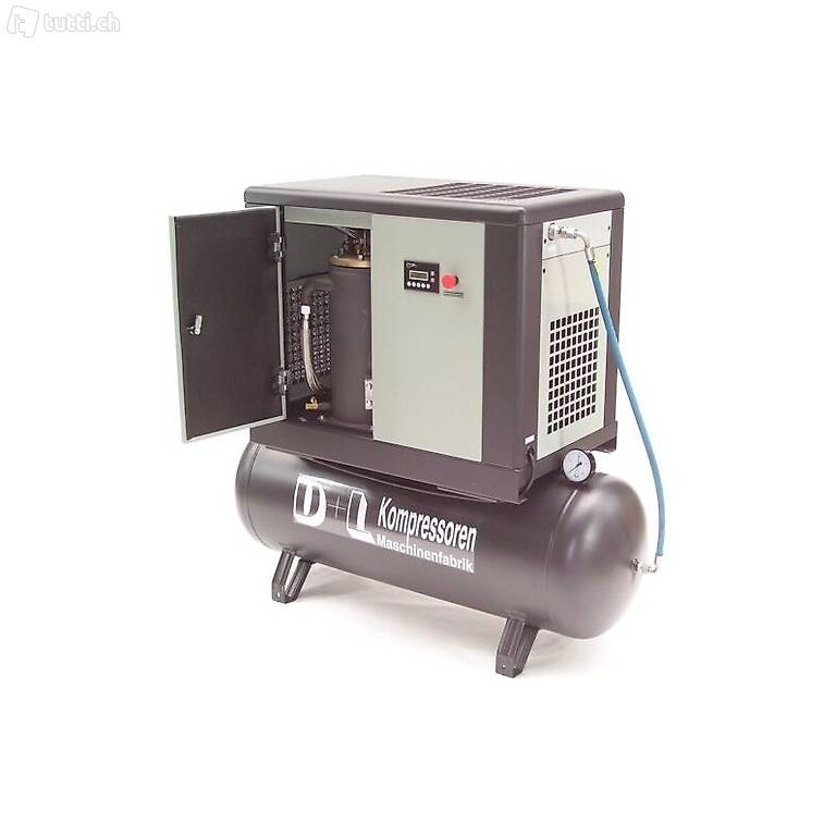 D+L Schraubenkompressor 1400/10/270 10 bar, 11 kW, 1400 l/min, wartungfreier leiser Direktantrieb, Touchpanel, thermostatisch elektronisch gesteuerter Ventilator, 270 Liter-Kessel 11 bar mit Kesselpapieren
