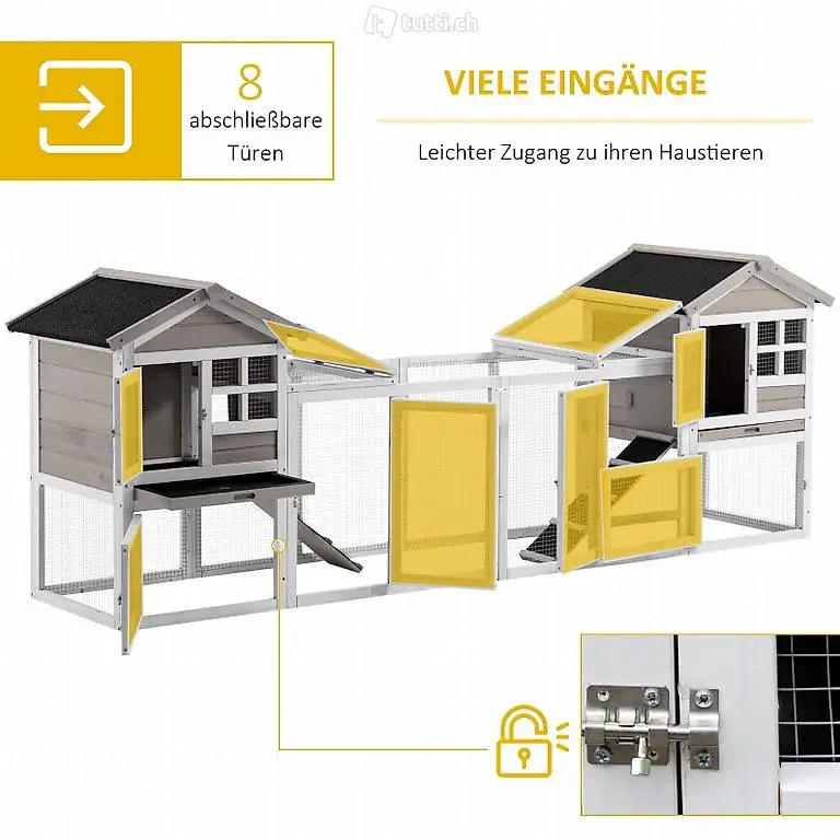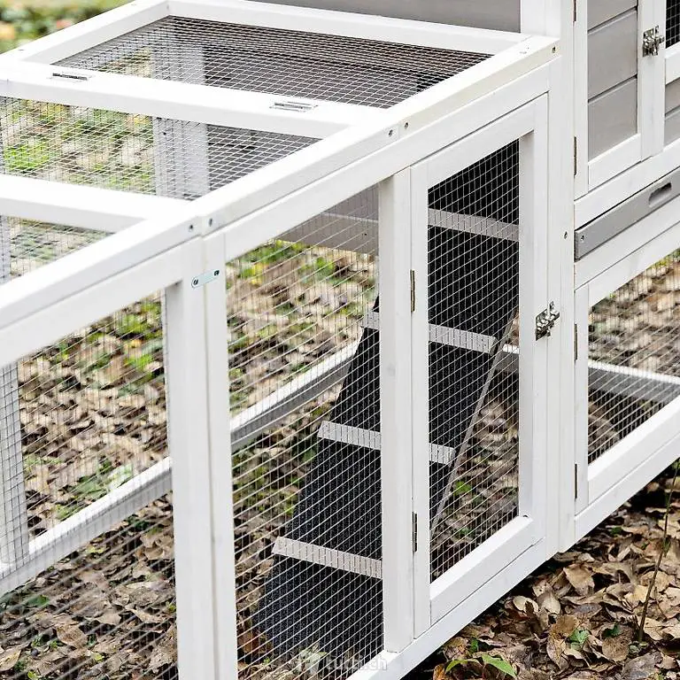 KOMBINIERBARES DESIGN: Dieser grosse Kaninchenkäfig kann als zwei kleine Kaninchenkäfige oder zu einem grossen Käfig kombiniert werden. Zwei Haupthäuser mit einem erhöhtem Laufkäfig bieten ihren Haustieren viel Platz.