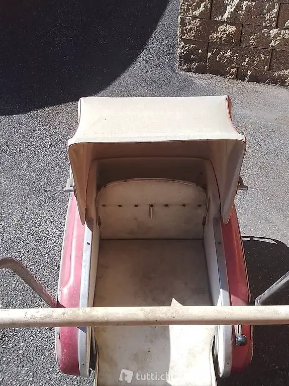 Farbe rot silber.Ein Rad Fehlt Gummibereifung.Verdeck und Abdeckung ganz.