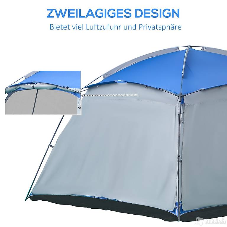 DOPPELTE STOFFLAGE: Die Kombination aus der inneren, blickdichten Schutzlage und der äusseren Stoffschicht mit Reissverschluss sorgt für eine gute Luftzirkulation und gleichzeitig für Privatsphäre. Binden Sie die Türen einfach mit den eingenähten Bändern zurück, um das Zelt optimal zu lüften.