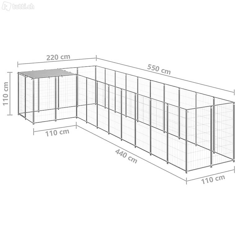 Hundezwinger strapazierfähig und auf eine lange Lebensdauer ausgelegt. Die mitgelieferte Überdachung besteht aus Polyethylen, das wasser- und UV-beständig ist und dadurch Schutz vor Sonne, Regen, Schnee und anderen rauen Wetterbedingungen bietet. Die abschliessbare Tür sorgt für zusätzliche Sicherheit.