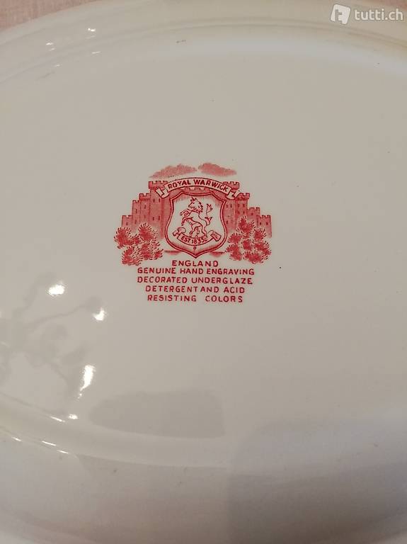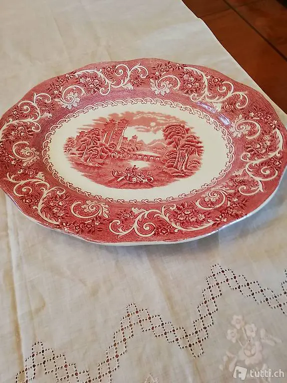 Vendo per mancanza di spazio, VASSOIO ovale VINTAGE, con motivi in ROSSO BORDEAUX (floreali + castello inglese) , marca inglese ROYAL WARWIck, 35 X 28 cm, poco usato. Solo ritiro a domicilio. Interessati contattare +41 76 326 26 41 oppure +41 91 971 82 84.