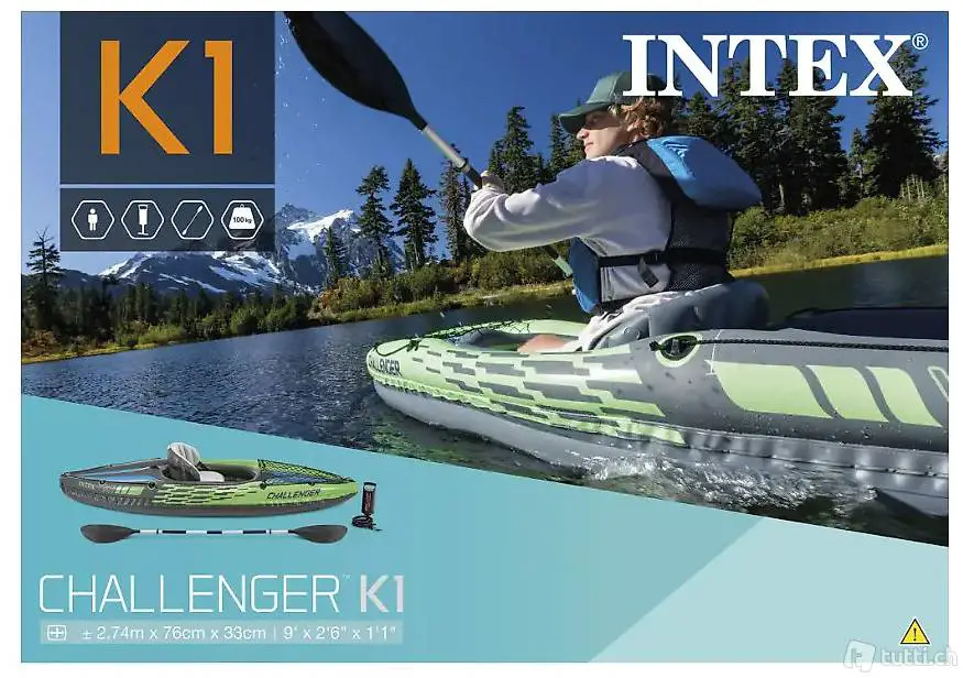 Dieses aufblasbare Kajak Challenger K1 von Intex ist ideal für eine Freizeittour auf einem ruhigen See oder Fluss.