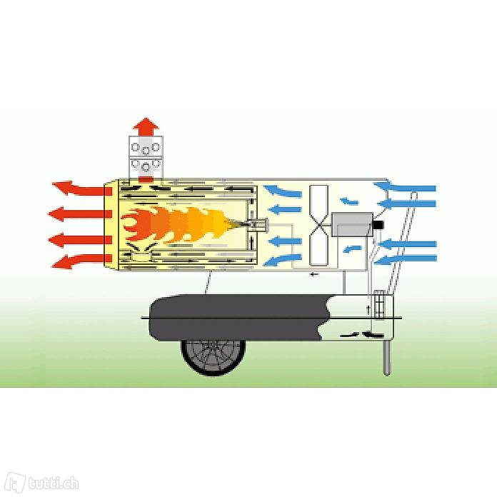 Heizung ausserhalb der zu beheizenden Zone aufgestellt und die Warmluft mit einem Schlauch in den