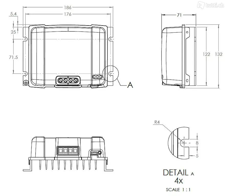 Masse (HxBxT) 130 x 186 x 70 mm