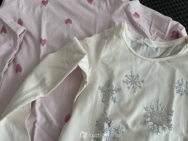 Das Set besteht aus total 3 Stücken, einem uni T-Shirt und zwei T-Shirts mit Motiven (glänzend / Pailetten) .