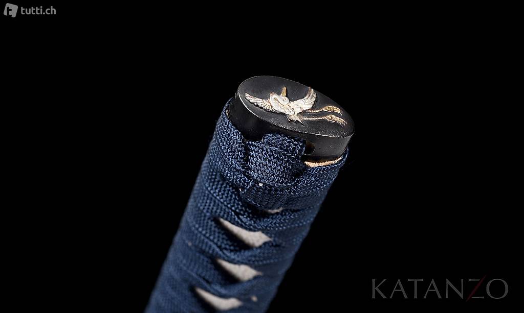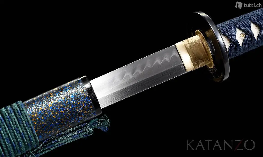 Handgeschmiedetes, japanisches Katana in eleganter Optik mit einer differentiell gehärteten Klinge aus 1095 Karbonstahl mit echtem Hamon.