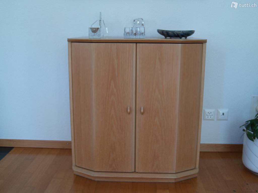 in Eiche furniert und lasiert mit 2 Türen und einem Tablar