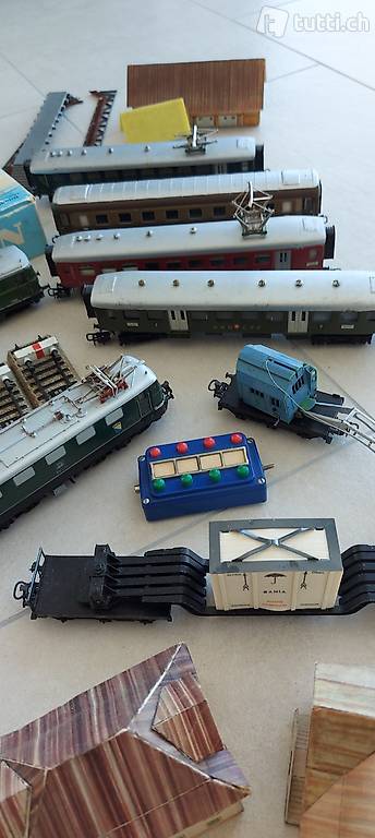 Loks, Wagons, Oberleitungen mit Anschlüssen, sowie div. Artikel, siehe Bilder, alles zus. Fr. 490.-