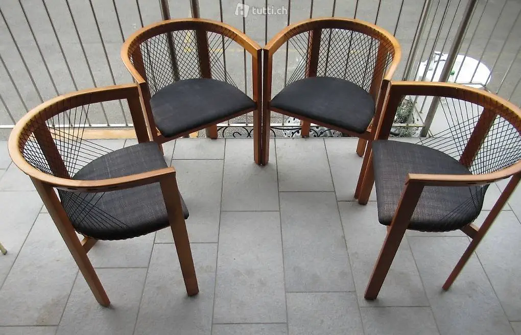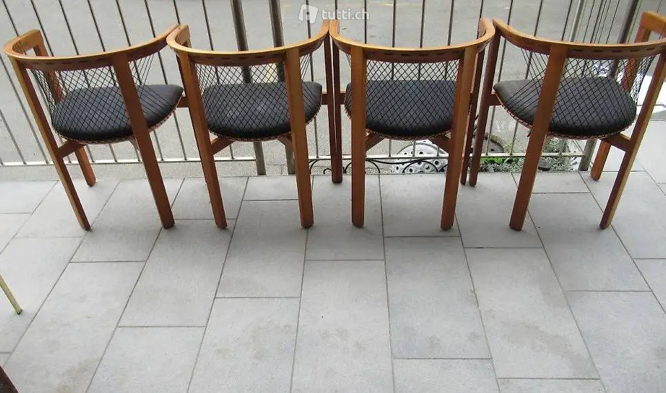 4 Stühle aus edlen Holz aus Dänemark im gebrauchten Zustand ohne Beschädigungen oder Fehler. Die richtige Bezeichnung ist; STRING DINING CHAIRS BY NIELS JØRGEN HAUGESEN FOR TRANEKAER, SET OF 4. Für Freunde skandinavischer Möbel. Neupreis war 1200 Franken pro Stuhl in Zürich. Masse ca. 58 x 46 x 70/46 cm. Kein Einzelverkauf.