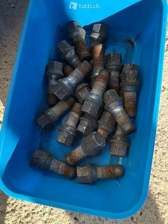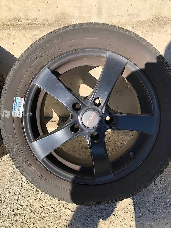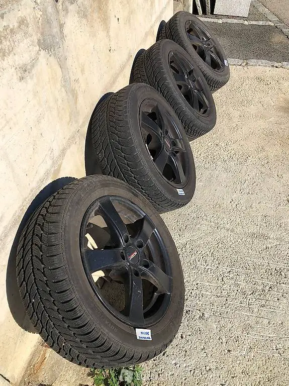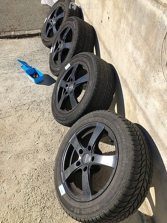 Cerchi in lega neri R16 con dadi di fissaggio.