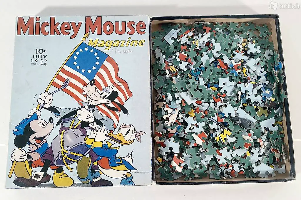 Puzzle von 1976. Die Verpackung ist entsprechend leicht abgenutzt, aber die Teile sind in einem guten Zustand. Perfektes