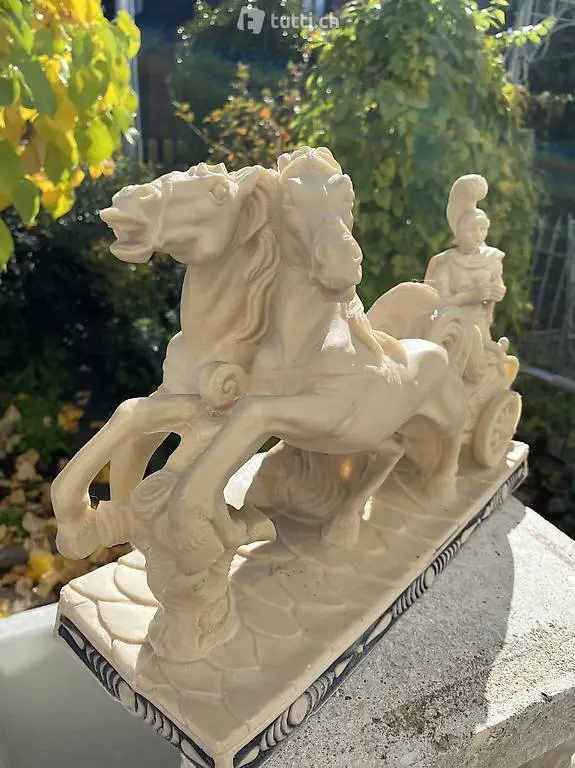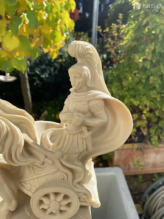 sehr gelungene Skulptur eines Streitwagenfahrers mit 2 Pferden,