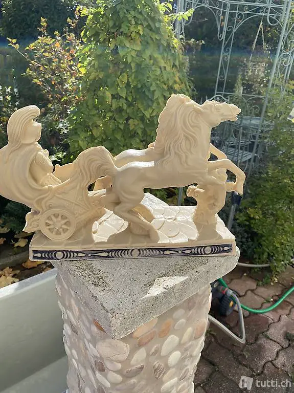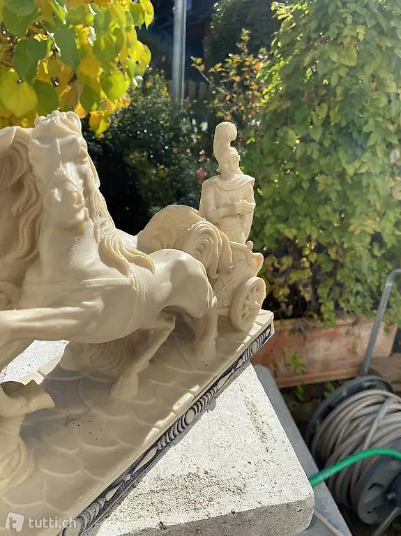 Streitwagen Skulptur aus Kunststein mit 2 Pferden
