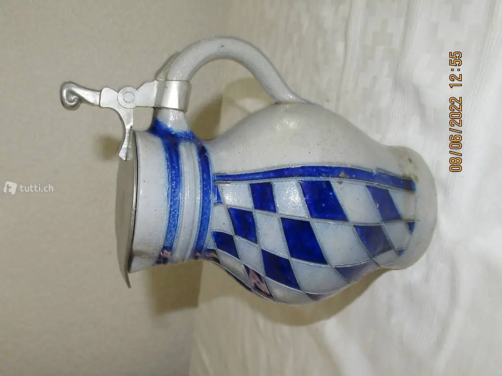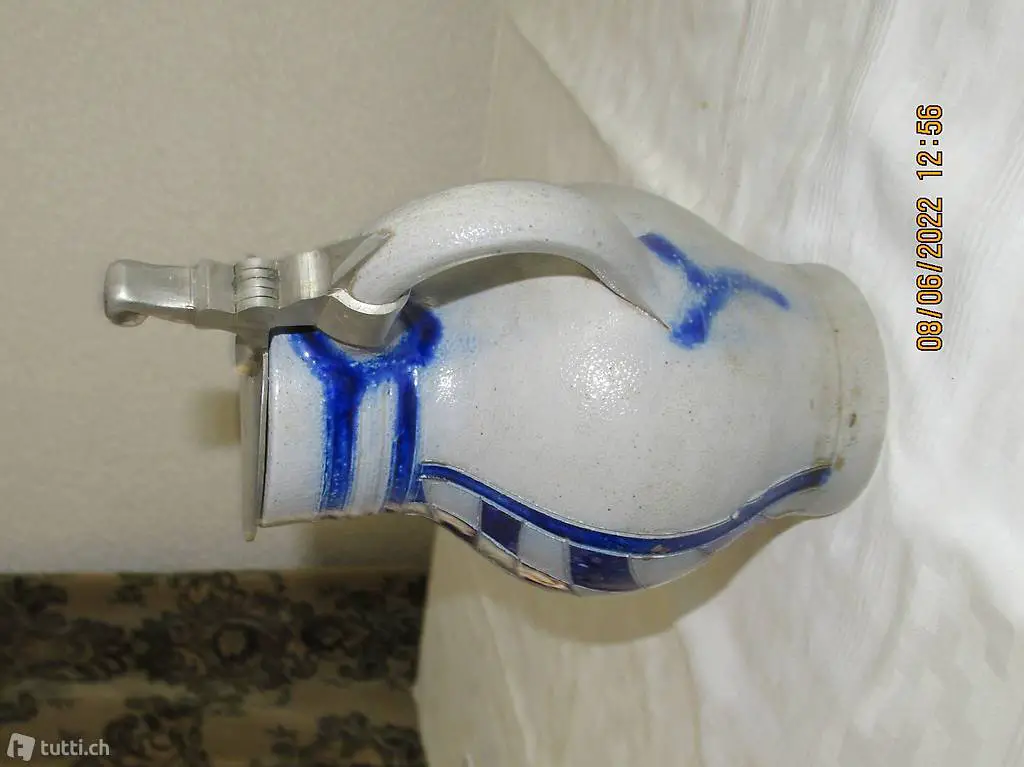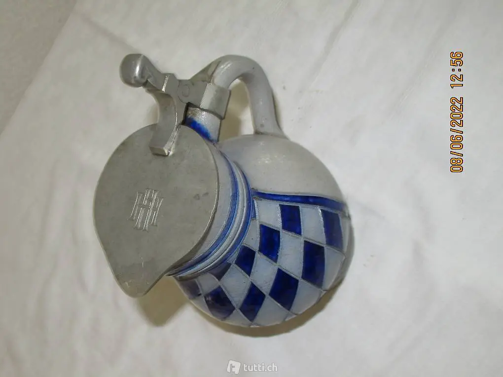 Weinkrug, Mostkrug mit Zinndeckel, gepunzt 1/2 Liter