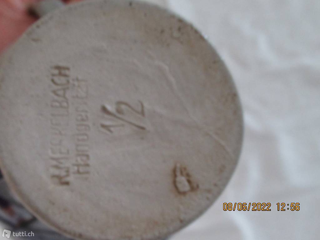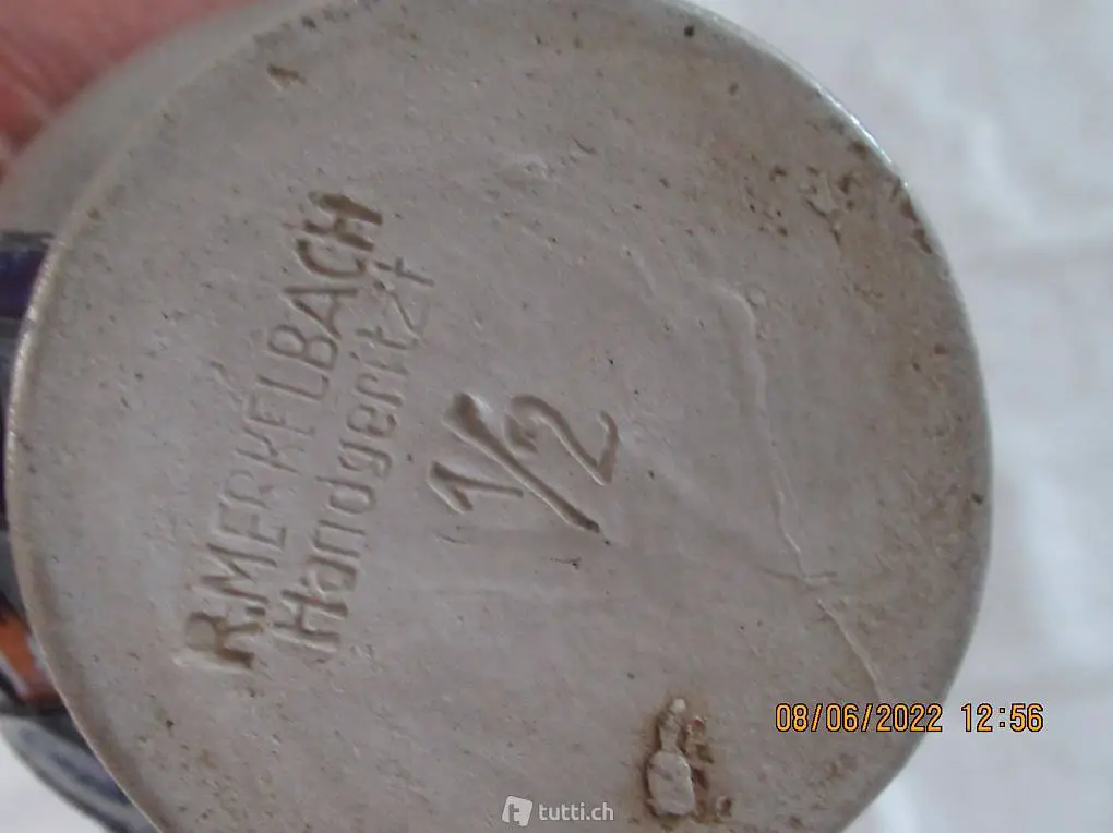 , Inhalt 1/2 Liter, Handgeritzt, von R Merkelbach, Sammelkeramik,
