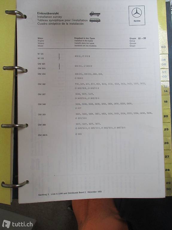Mercedes-Benz (Ordner A, Band 2) - Ausgabe Dezember 1970 - Daimler-Benz Aktiengesellschaft, Stuttgart-Untertürkheim. Art.-No. KD 00 240 2301 00 1170 1,5. Deutsch. Original-Ausgabe. Mit leichten Gebrauchsspuren (vor allem auf Ordner-Deckel) , sehr gut und komplett erhalten.