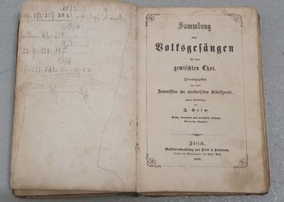von Volksgesängen für genmischten Chor" Jg.1863, stark gebrauchte Einbindung, über 250 Lieder