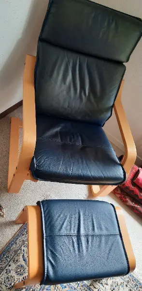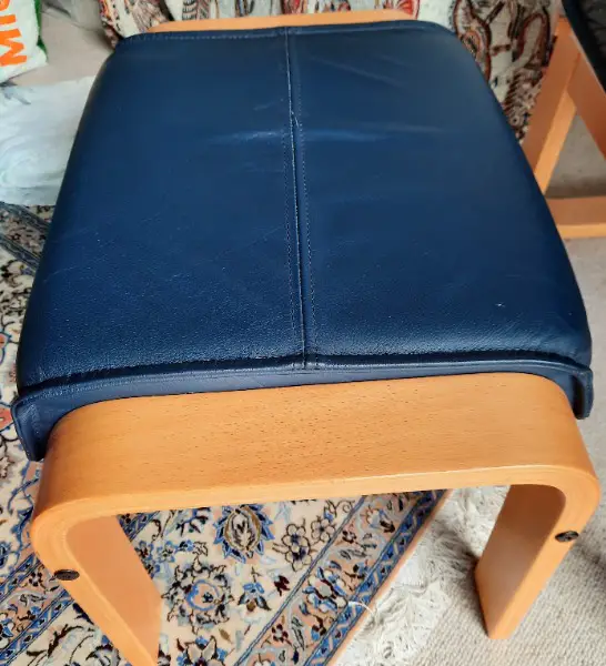 Der Lehn-Sessel + Schemel ist fast neu/kaum gebraucht. hat keine Abnutzungserscheinungen.