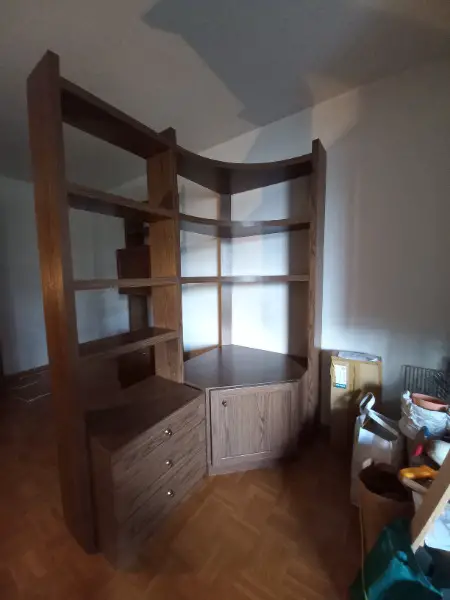 Regal: Masse: Höhe 2.03m, Breite 148cm X Breite: 87 cm, Ecktiefe: 78cm, Tiefe bei Schubladenelement: 43cm.