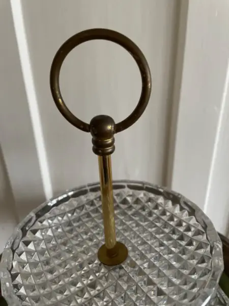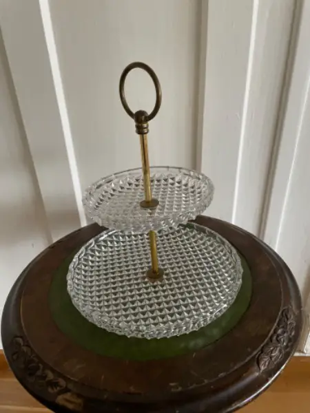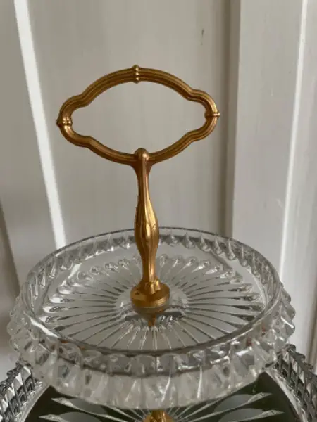Etageren aus Kristallglas, 2 Etagen, Messing Griffe, in sehr gutem Zustand