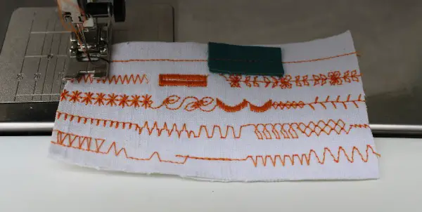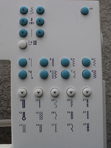 Mit 23 verschiedenen Stichprogrammen: Gerade, Zickzack, Bogennaht, Blindsaum, Muschelkantenstich, Dreifach Zickzack, Hohlsaum, Zierstiche, Wabennaht, ... siehe Bild 2.