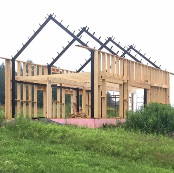 -Wir verwenden Stahlrahmen und dann werden die Holzsparren mit