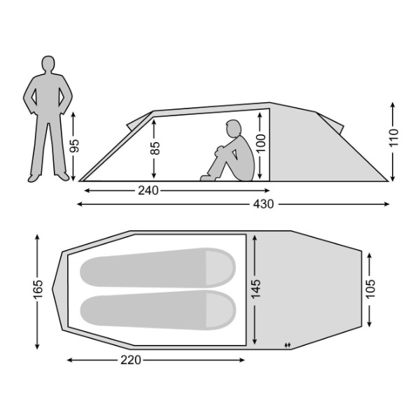 Grösse Innenzelt (LxBxH) : 220 x 145 x 100 cm