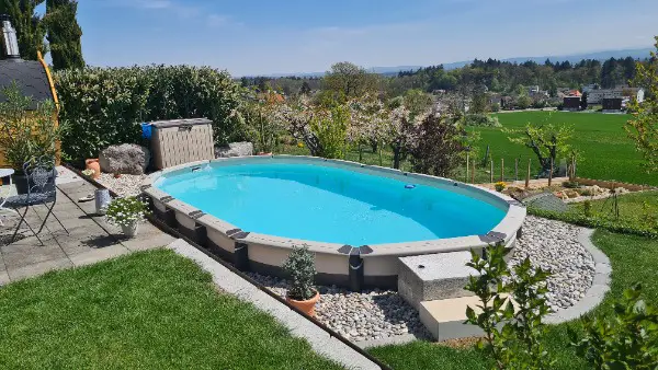 (Ovalpools sind mit einem Kunststoffmantel ausgestattet, dadurch ist auch der Einbau einer Salzanlage möglich)