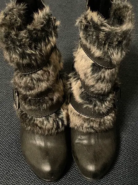 Aussen Fellbesatz innen gefüttert. Schnallen