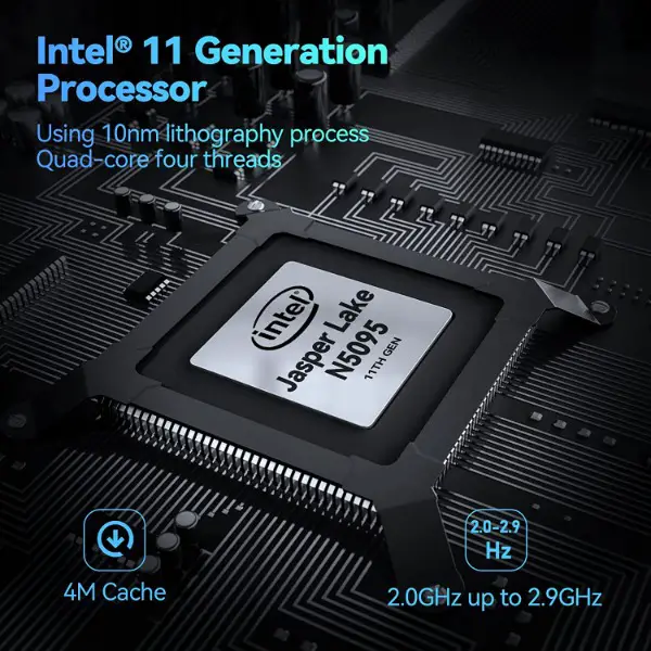 schneller INTEL N5095 11th. Generation Prozessor mit bis zu 2.90 GHz! !