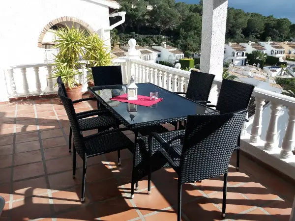 Ferienhaus liegt in einer Sackgasse einer beliebten Urbanisation in Moraira an der Costa Blanca nur 1.500 m vom Sandstrand und Zentrum von Moraira entfernt, umgeben von sehr vielen schönen